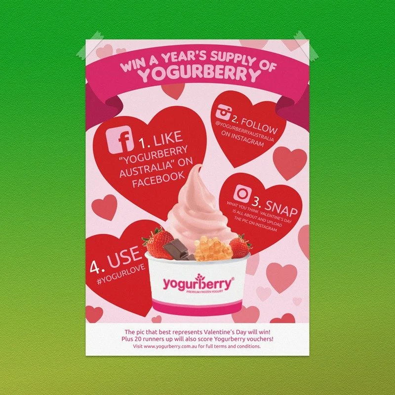 I created a vibrant Valentine’s campaign for Yogurberry, designing social assets for Instagram and Facebook alongside a print poster, bringing the brand’s playful personality to life and making the campaign instantly shareable and memorable.
